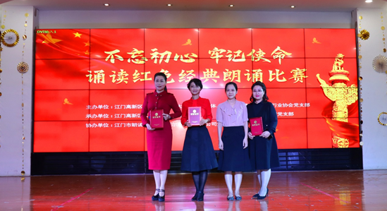 甘化公司人力資源部副經(jīng)理陸萍參加由江門市高新區(qū)(江海區(qū))火炬大廈黨建共同體、江門國(guó)家高新區(qū)光電行業(yè)協(xié)會(huì)主辦,江門市高新區(qū)(江海區(qū))稅務(wù)局第四黨支部、江門市江藝實(shí)業(yè)有限公司黨支部承辦的“不忘初心 牢記使命”誦讀紅色經(jīng)典朗誦比賽。經(jīng)過(guò)初賽、復(fù)賽多場(chǎng)激烈的角逐,于2019年10月18日的決賽中,她以紅色經(jīng)典作品《雪山小太陽(yáng)》榮獲二等獎(jiǎng)。