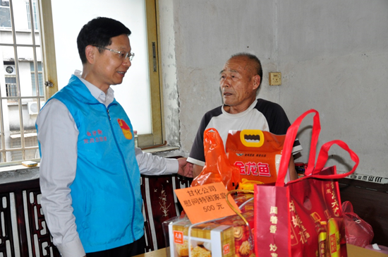 甘化黨員守初心,關(guān)愛活動暖人心1月10日下午,公司黨委書記方小潮在甘化社區(qū)黨委人員陪同下,開展關(guān)愛轄區(qū)困難黨員、困難群眾“送溫暖”主題黨日活動。方書記一行上門走訪慰問了4戶原甘化困難黨員、1戶困難群眾,詳細(xì)了解他們家庭人員身體狀況和生活狀況,致以誠摯的節(jié)日問候,勉勵他們增強(qiáng)信心,早日戰(zhàn)勝困難,并每戶送上了500元慰問金和大米、食油和餅干等節(jié)日禮品。他們都很感動,連聲道謝;有的還熱淚盈眶,激動地說,“您們真好!”通過活動,讓煎熬中的困難家庭感受到來自于企業(yè)和社會的關(guān)愛。