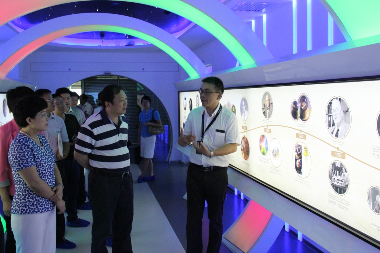 德力光電副總經(jīng)理葉國(guó)光陪同胡功民及鐘軍副市長(zhǎng)先后參觀(guān)了外延片、芯片生產(chǎn)車(chē)間及展廳,副總經(jīng)理葉國(guó)光在參觀(guān)過(guò)程中介紹了公司的產(chǎn)品、生產(chǎn)工藝、行業(yè)優(yōu)勢(shì)等相關(guān)情況。胡功民對(duì)我公司的技術(shù)表現(xiàn)出了濃厚的興趣。